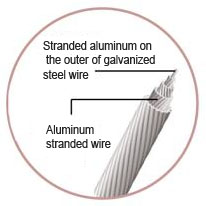 Stranded aluminum on the outer of galvanized steel wire strands in the middle.