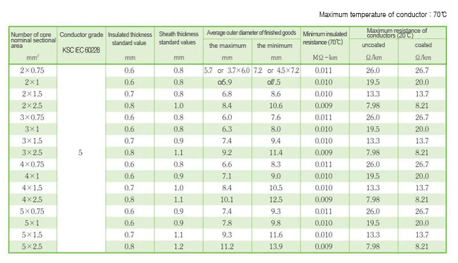 Single core cable: no regulation Double core cable: no regulation Three core cable: green/yellow, sky blue, brown or sky blue, black, brown Four cores cable : green/yellow, black, brown or sky blue, black, brown, black or brown Five cores cable : green/yellow, sky blue, black, brown or sky blue, black, black and brown, or brown, black or brown |