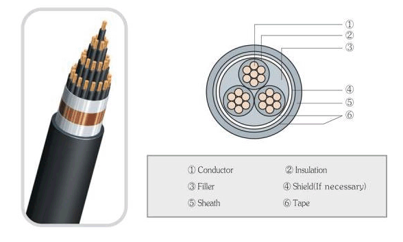 Screening wire cores insulated by over 5 cores XLPE can be signed by coloring surface of insulators, insulators, or other methods